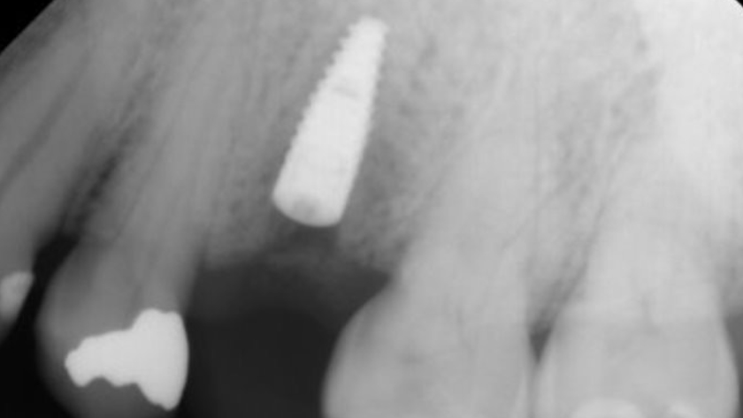 Tooth 13* required extraction in a 54-year-old male patient. The buccal bone was absent. Goal was to restore the site with an implant.