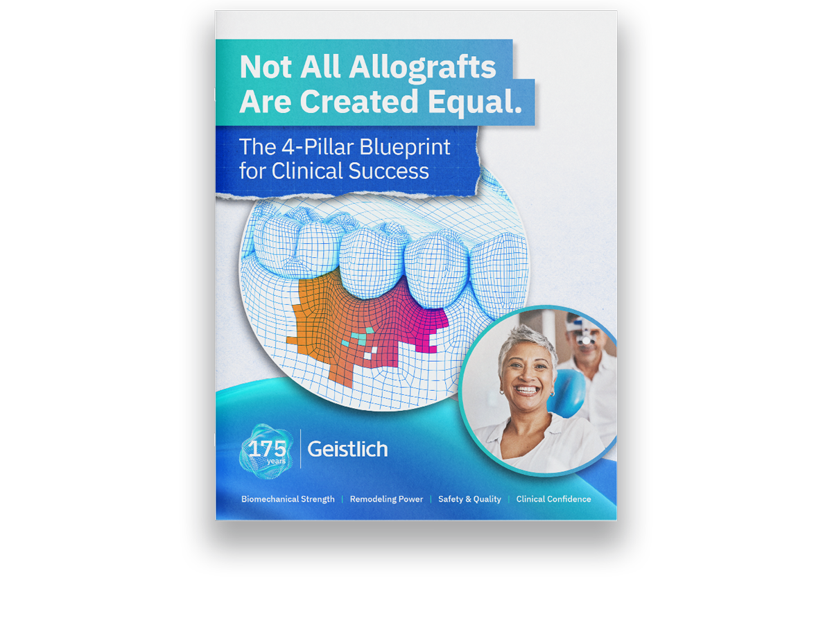 As a leader in oral regeneration, Geistlich understands that in certain clinical situations, rapid turnover of bone is important. With our comprehensive allograft portfolio, vallos® provides you the optimal allograft scaffold to meet a variety of regenerative needs.